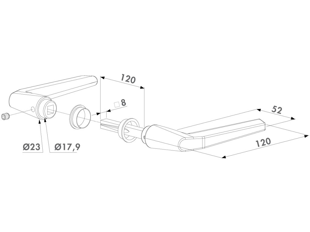 Kľučka a štítky: eloxovaný hliník