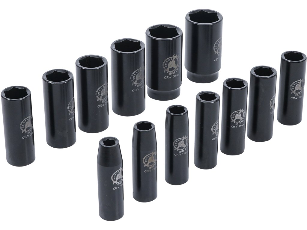 Táto sada nadstavcov je určená pre rázové uťahováky s upínaním 1/2". Obsahuje 13 nadstavcov v rôznych veľkostiach od 10 mm do 32 mm, čím umožňuje široké spektrum použitia. Nadstavce sú vyrobené z vysoko kvalitnej chróm-vanádiovej ocele a sú odolné voči opotrebeniu.Dodatočné parametre