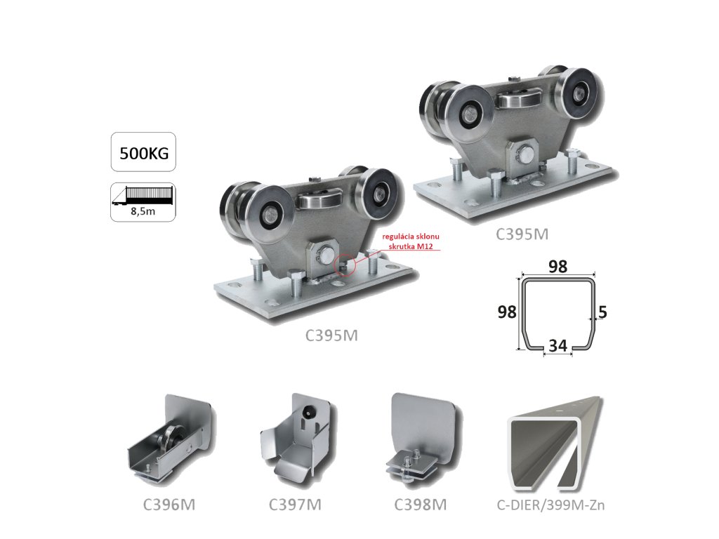 Upozornenie: Set obsahuje samonosný profil dĺžky 6 000 mm. Dĺžka profilu nezodpovedá svetlej šírke prejazdu.