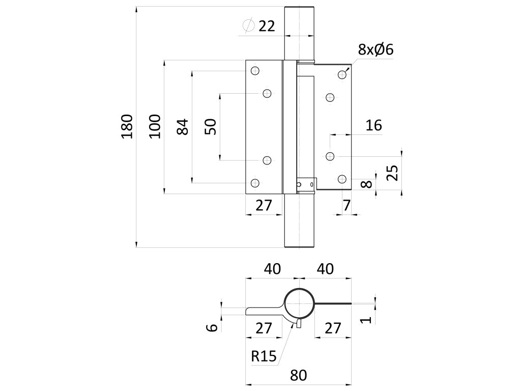 Samozatvárací pružinový záves, otvárateľný 90°, AISI 304