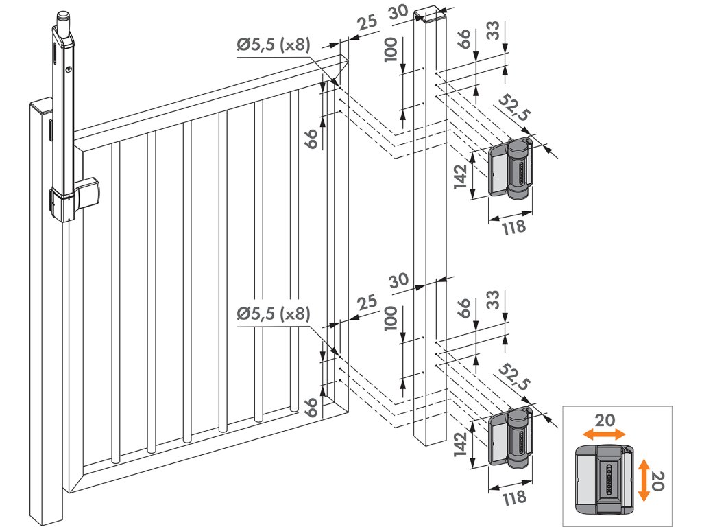 Estetický samozatvárač pre brány s nastaviteľnou rýchlosťou zatvárania. Púzdro z vystuženého skleného vlákna PA chráni vysokokvalitné vnútorné komponenty, čím zaručuje dokonalú funkčnosť za každého počasia. Možnosť 20 mm vertikálneho a horizontálneho nastavenia umožňuje jednoduchú a flexibilnú inštaláciu. Pevné uchytenie pomocou samovrtných skrutiek - bez potreby zvárania. Vhodné pre inštaláciu na štvorcové rámy. Ideálne riešenie pre bazény, ihriská, parky a záhradné brány.