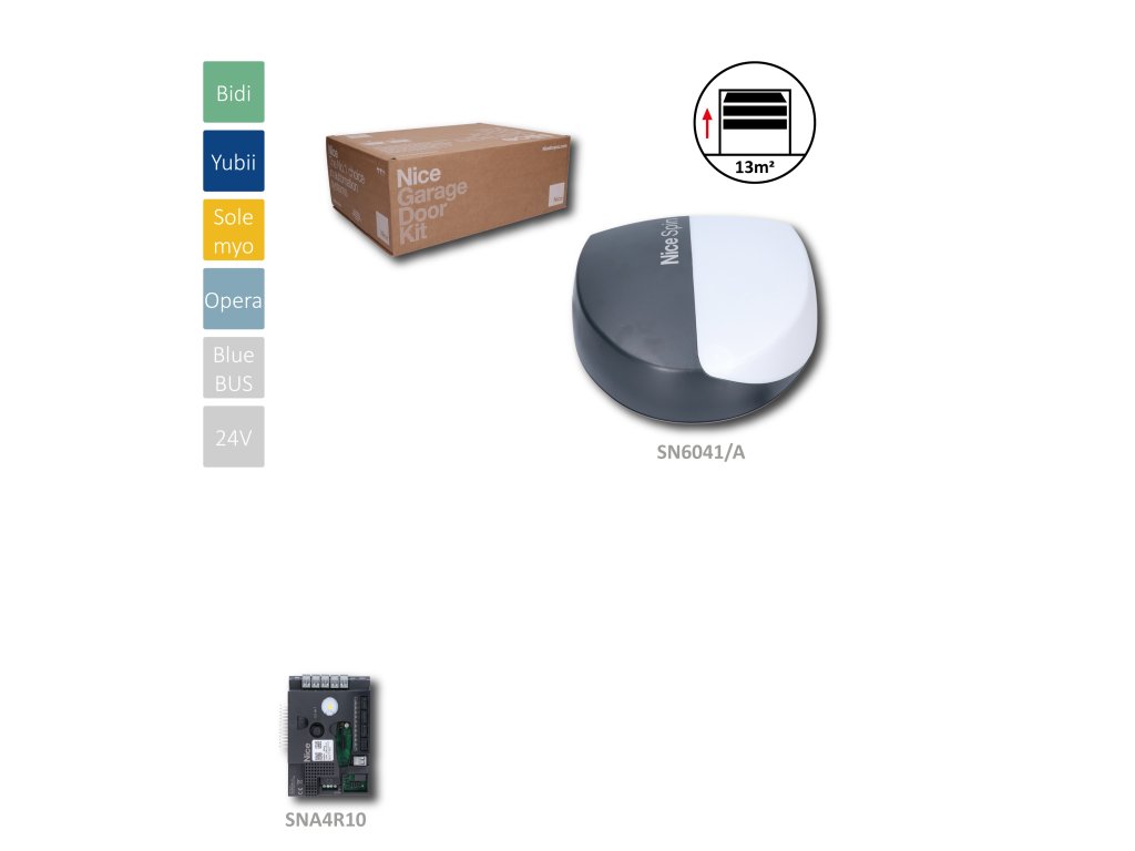 Pohon pre sekcionálnu bránu do 13m², 1x SN6041/A (24V, 370W, 1000N), 1x SNA4R10, kombinácia s dráhou SN30/SNA6
