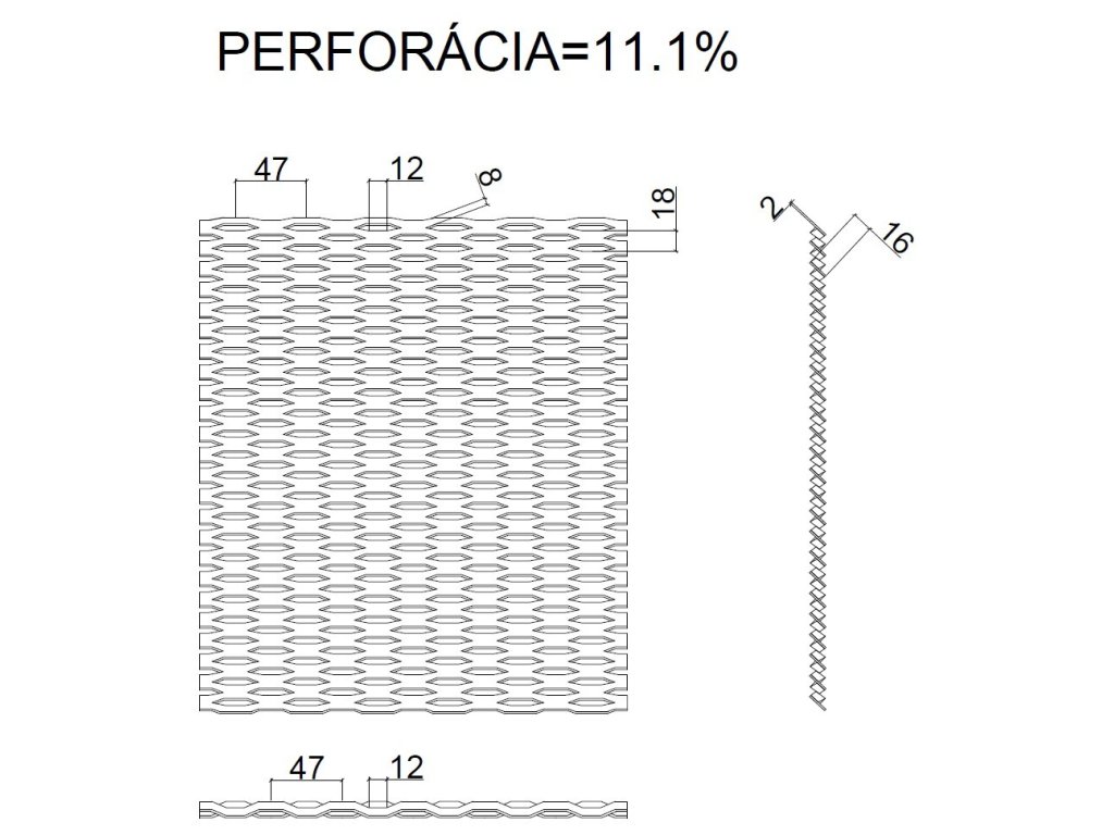 Ťahokov Al, kosoštvorcové oko: 47x18mm, mostík: 8mm (1000x1500x2mm), orientácia oka: rozmer oka 47mm je rovnobežná s rozmerom tabule 1000mmDodatočné parametre