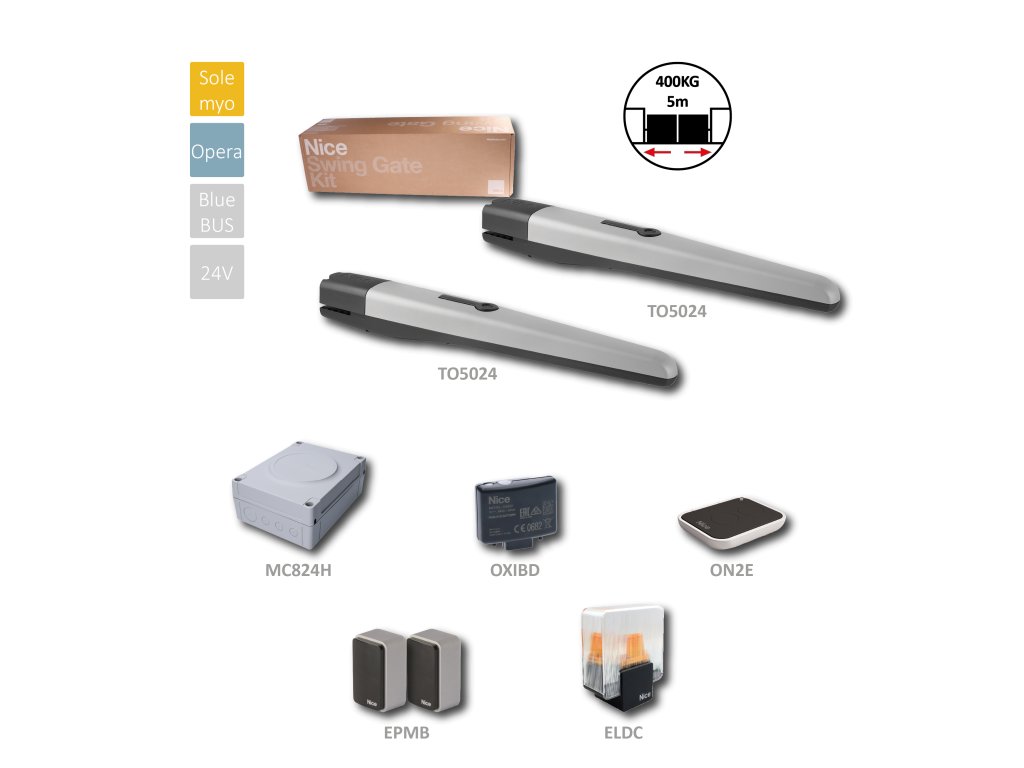 sada pre krídlovú bránu do 5m/krídlo, 2x TO5024 (24V, 120W, 1800N), 1x MC824H, 1x ON2E, 1x OXI, 1 pár EPMB, 1x ELBDodatočné parametre