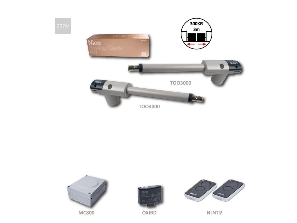 TOO3000KLT je sada pohonov pre automatizáciu dvojkrídlových brán s dĺžkou krídla do 3 metrov.