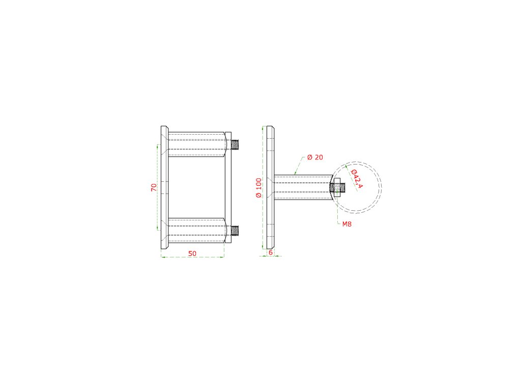 úchyt na bočné kotvenie stĺpu ø 42.4mm (ø 100 /8.8mm), leštená nerez /AISI304
