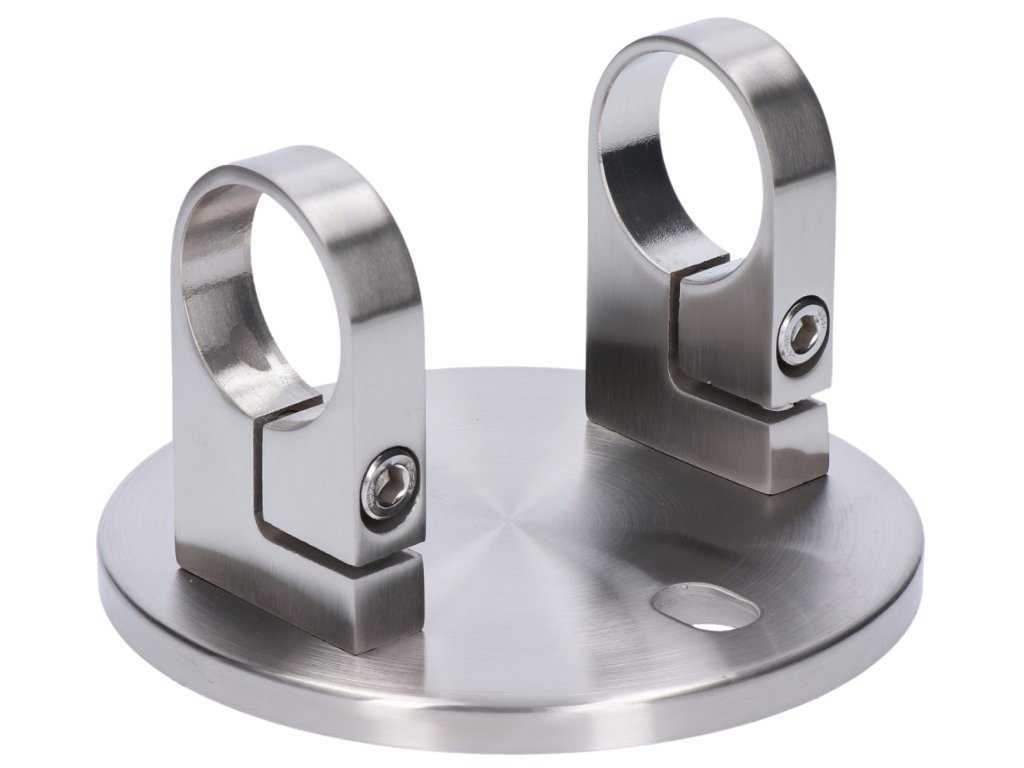 úchyt na bočné kotvenie stĺpu ø 42.4mm, (kotviaca platňa ø 150 /10mm), brúsená nerez K320 /AISI304