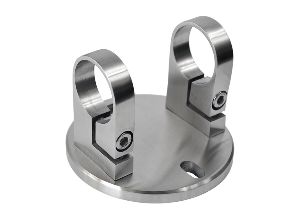 úchyt na bočné kotvenie stĺpu ø 42.4mm, (kotviaca platňa ø 120 /10.0mm), brúsená nerez K320 /AISI304