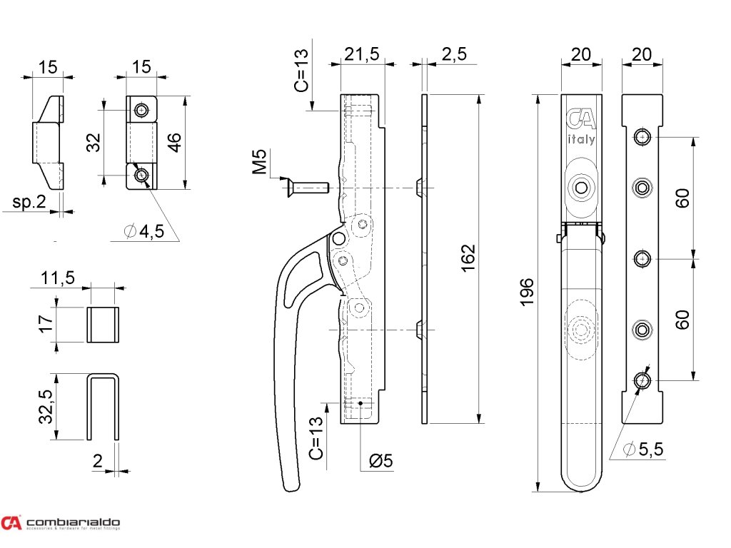 Uzatvárací pákový systém L = 162 mm pre tyč 10 x 10 mm