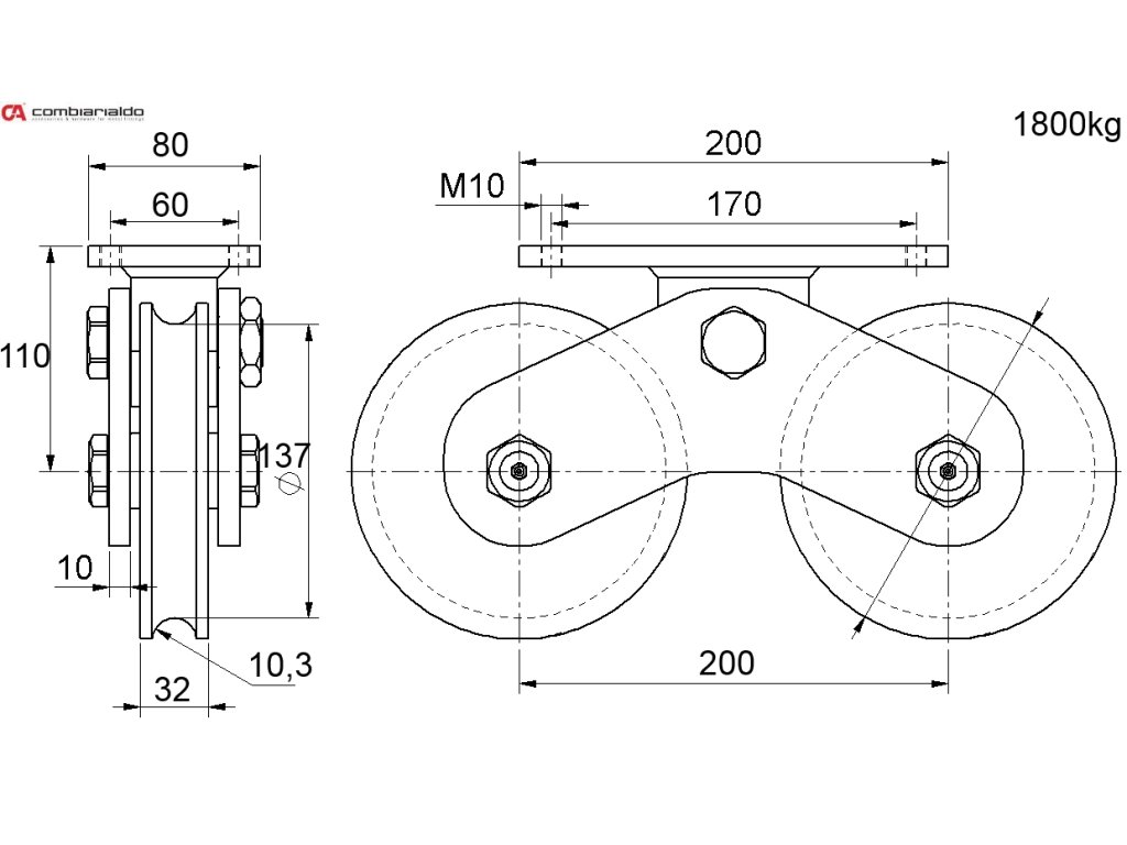 Koliesko od popredného talianského výrobcu Combi Arialdo. Povrchová úprava- pozink. Použitie pre posuvné brány. Väčšia zaťažiteľnosť s dvomi kolieskami na konzole.