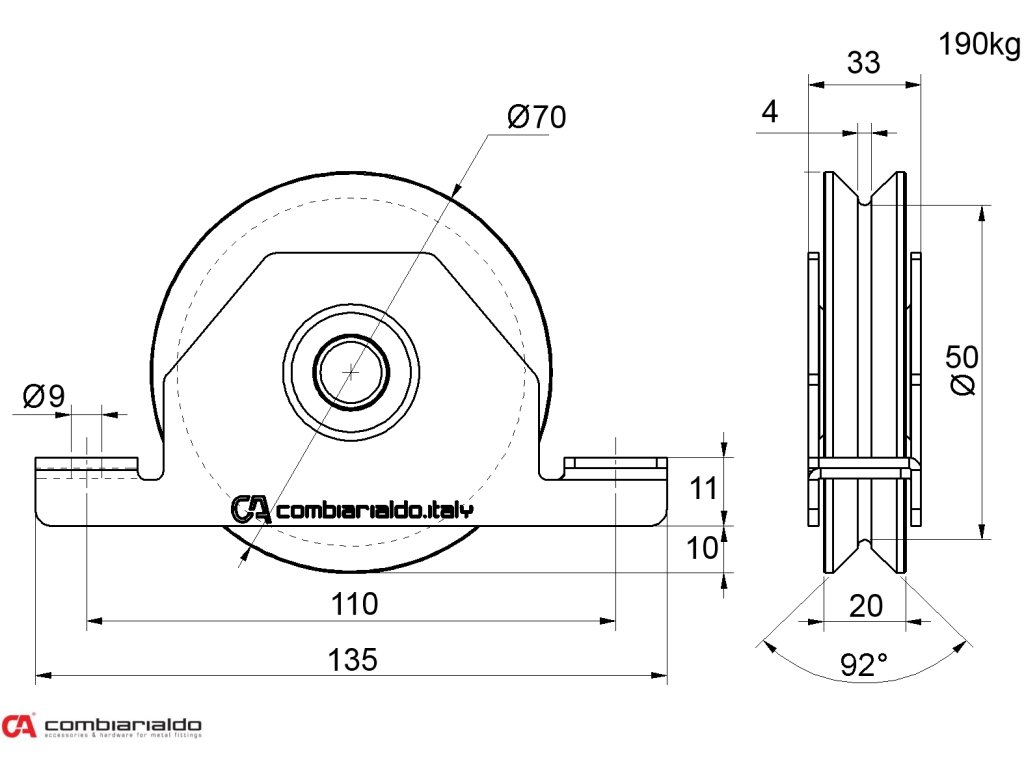 Koliesko od popredného talianského výrobcu Combi Arialdo. Povrchová úprava- pozink. Použitie pre posuvné brány.