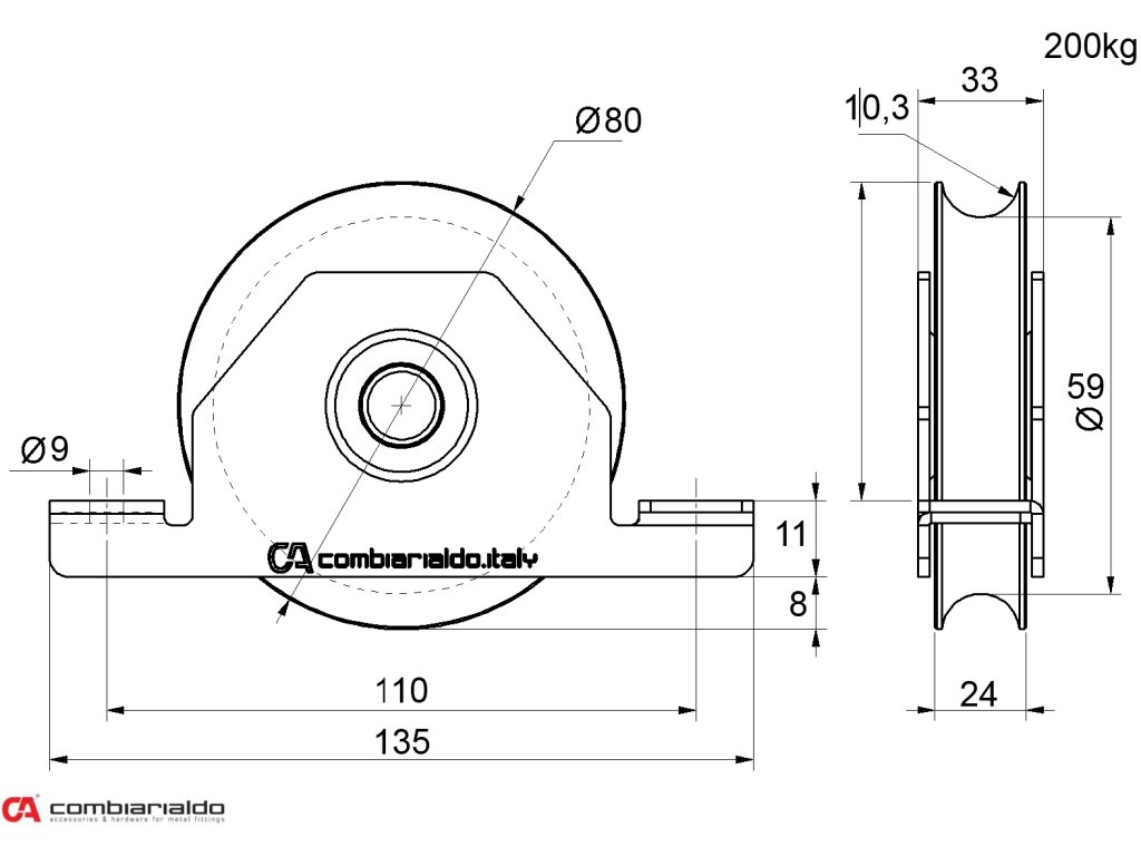 Koliesko od popredného talianského výrobcu Combi Arialdo. Povrchová úprava- pozink. Použitie pre posuvné brány.