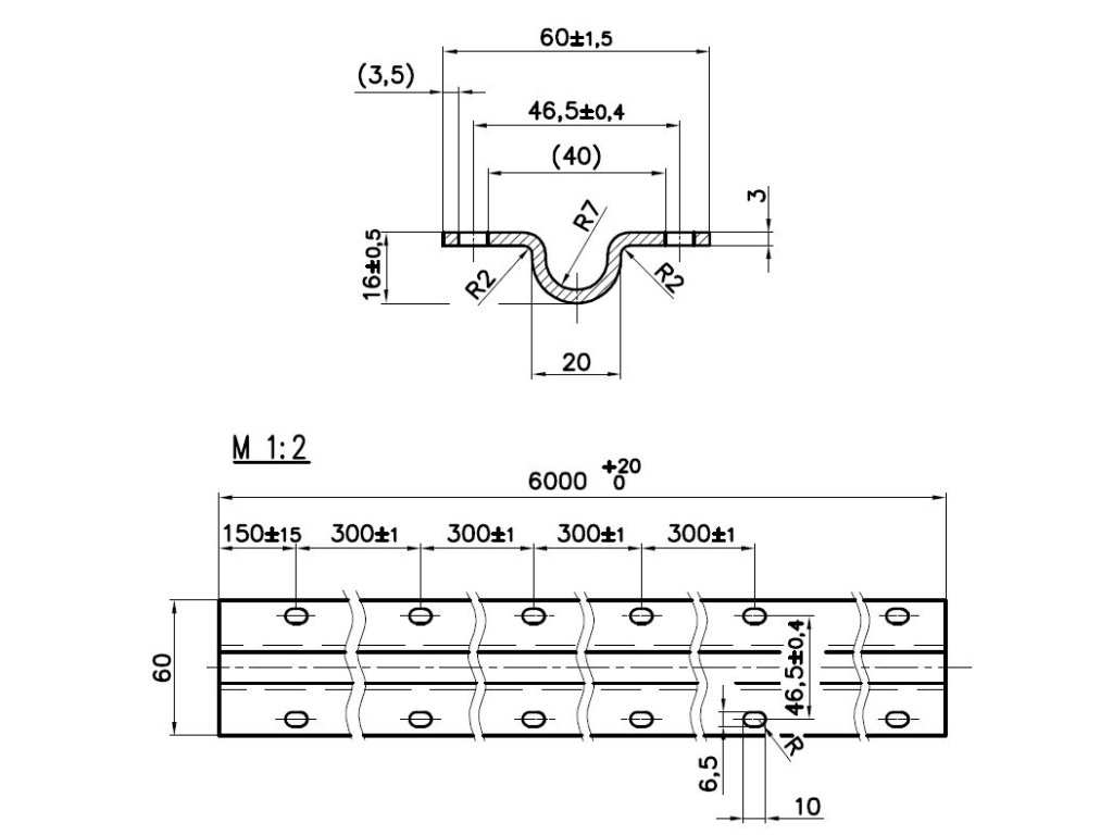 Vodiaci profil U ø 20 x 6000 mm pre posuvné brány
