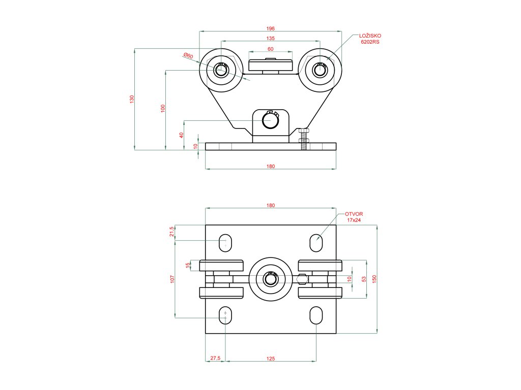 Vozík PICCOLO KLASIK do 300 kg, profil 67 x 67/69 x 69 mm