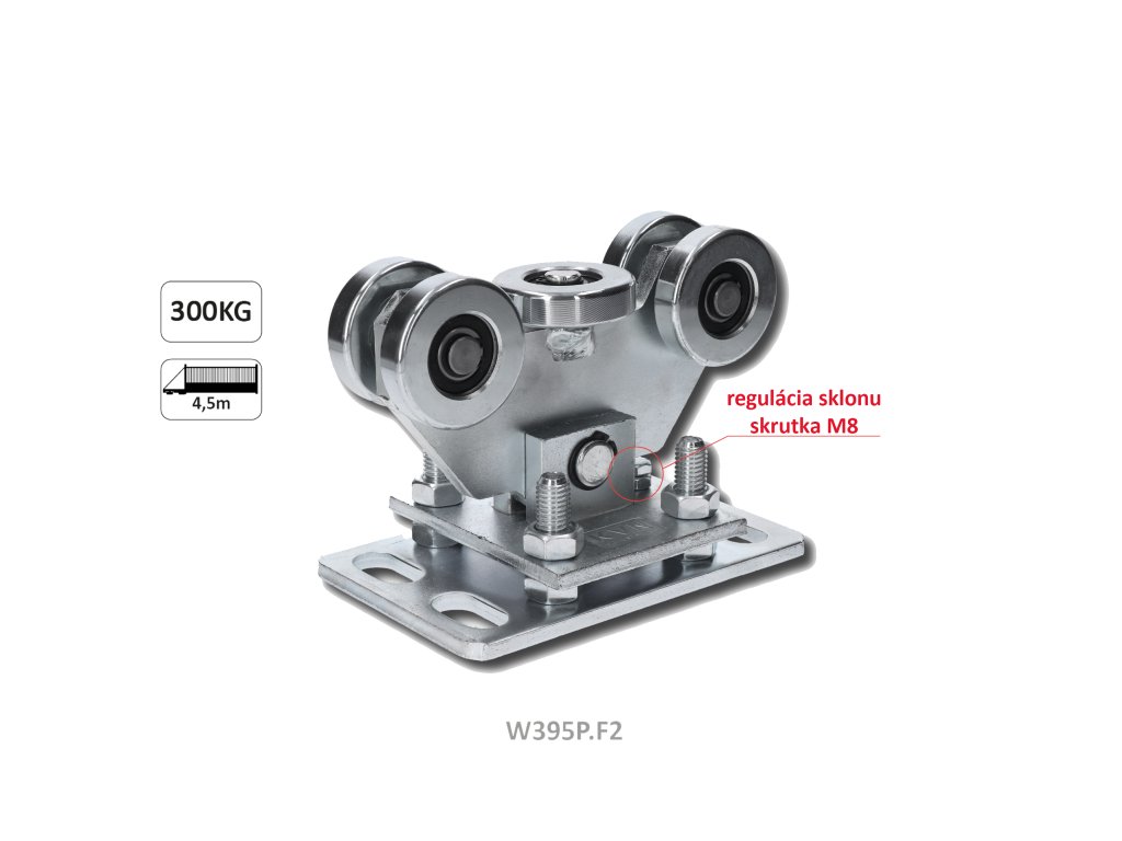 Vozík PICCOLO KLASIK pre C-profil 67 x 67/69 x 69 mm samonosného systému posuvných brán do 300 kg, s nastaviteľnou platňou a dorazovou skrutkou sklonu vozíka