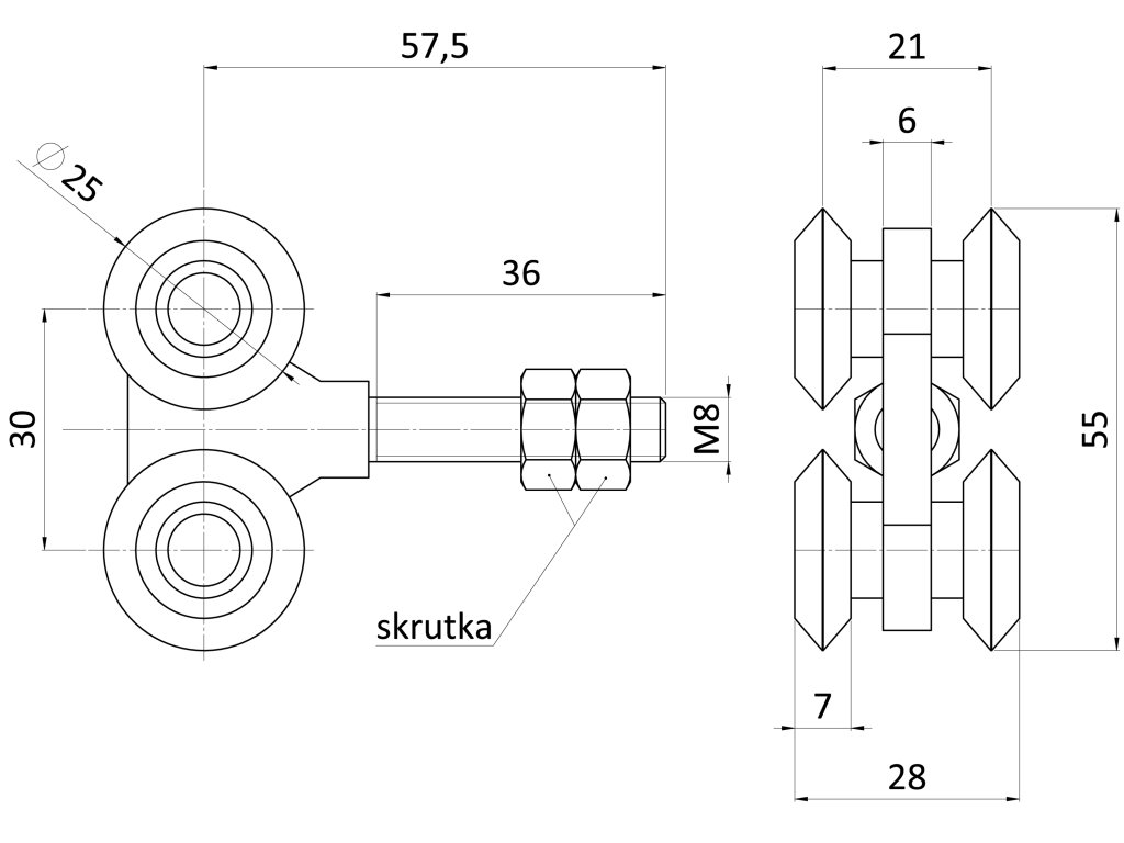 vozík pre závesný systém, 4 kolieska, do 75kg, uzatvorené ložiská, pre profil C920P