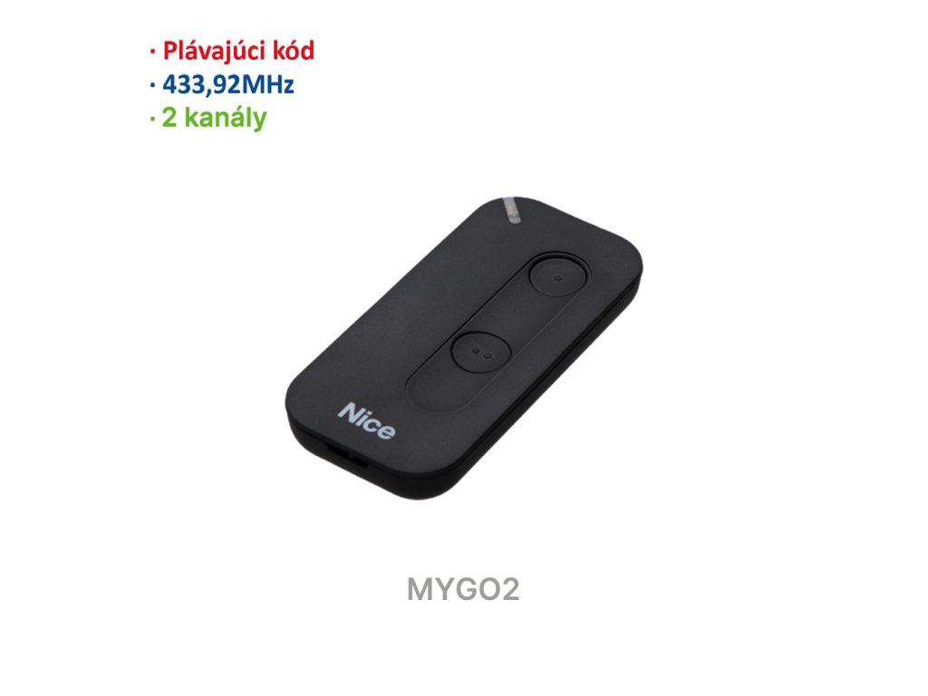 MYGO2 je vyrobený z kvalitných materiálov a jde o povedený ovládač s nadčasovým vzhľadom. Je určený na ovládanie pohonov brán, garáží a závor firmy Nice. Praktický a elegantný 2-kanálový diaľkový vysielač čiernej farby je kompatibilný s prijímačmi, ktoré používajú jednosmerné rádiové kódovanie "O-Code". Toto systémové kódovanie vám umožňuje využívať všetky pokročilé funkcie systému „Nice Opera“.