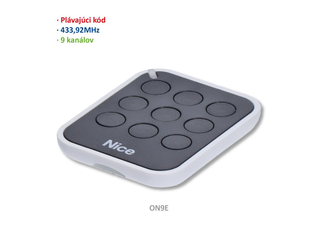 433,92 MHz plávajúci kód, správa Povoľovacích kódov a Certifikátov, samonačítanie a zabudovaný čítač zblízka; s kódovaním 0-Code 72 Bit, kompatibilný aj s prijímačmi s kódovaním Nice FloR.