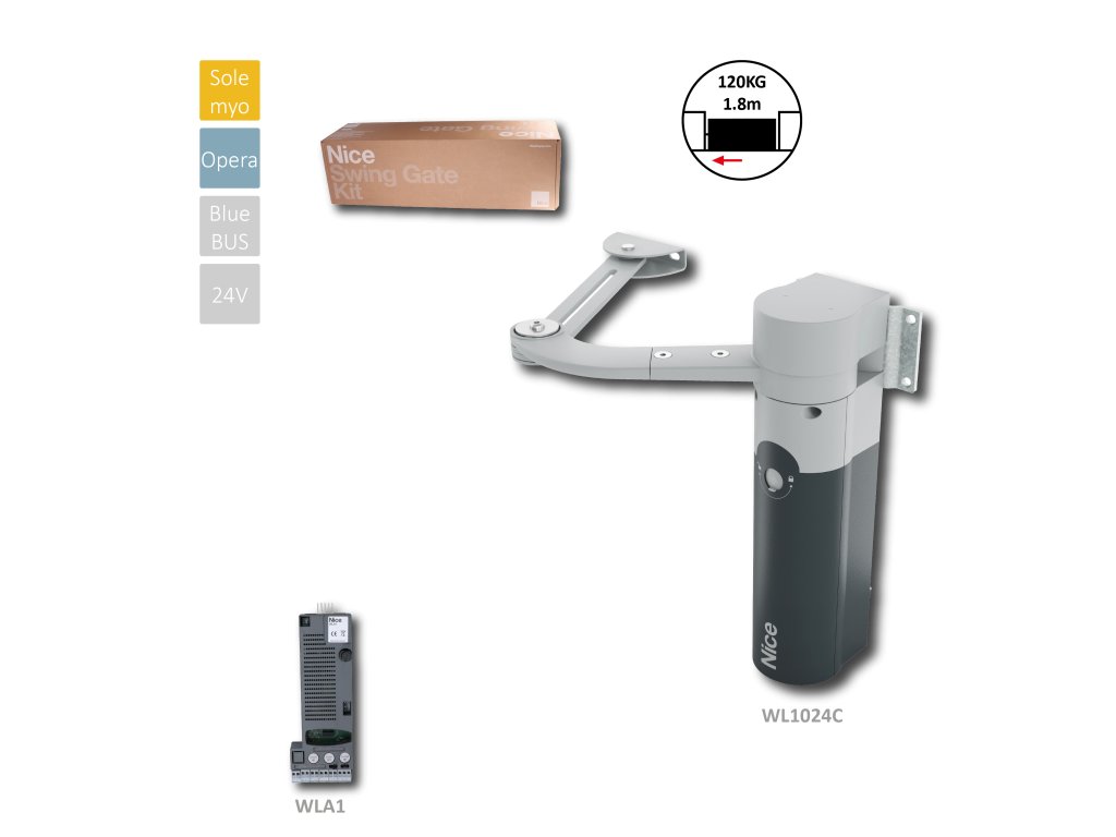 Samostatný ramenový pohon pre krídlovú bránu WL1024C (230V, 50W, 100nM), so zabudovanou elektronikou WLA1, bez OXI