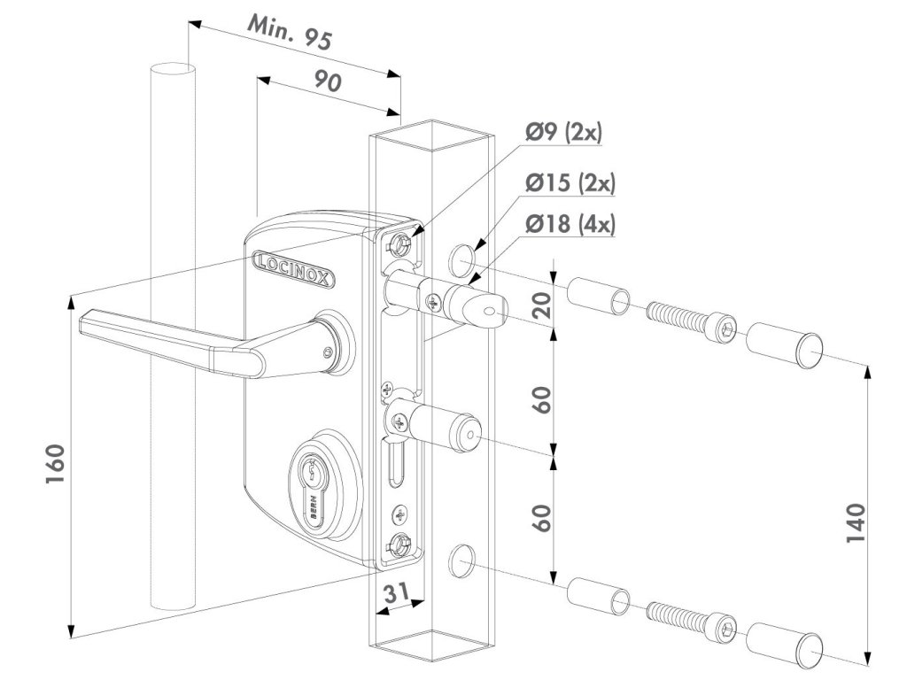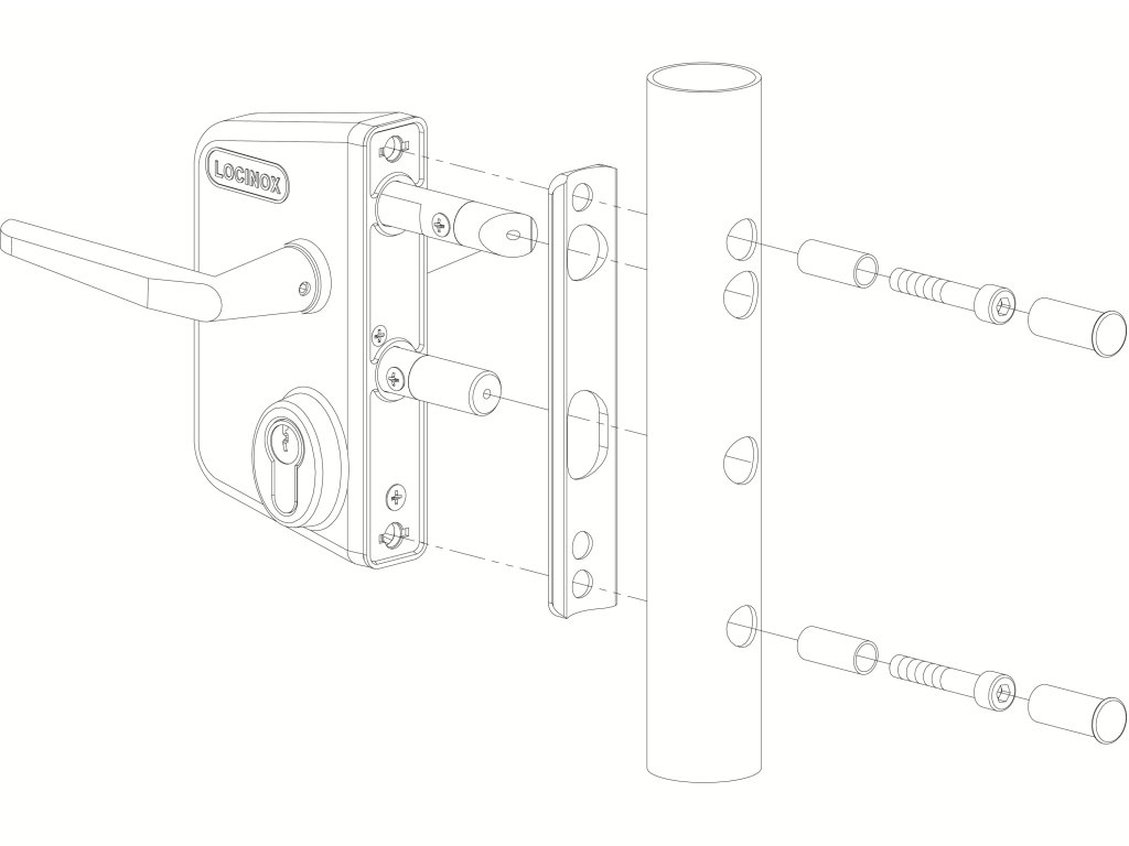Vysoko kvalitný zámok s hliníkovou kazetou a mechanizmom z nehrdzavejúcej ocele. Tento zámok radíme ako štandard pre všetky priemyselné brány. Strelka zámku z nehrdzavejúcej ocele má regulovateľný výsuv (20 mm), nastavovanie strelky je bez nutnosti demontáže. Pre rýchlu a presnú montáž odporúčame použiť vŕtací prípravok LOCINOX® Drill-Fix.