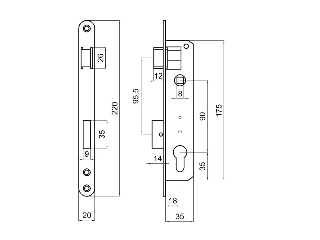 zámok vložkový, zápust 35mm, rozteč 90mm, čierny