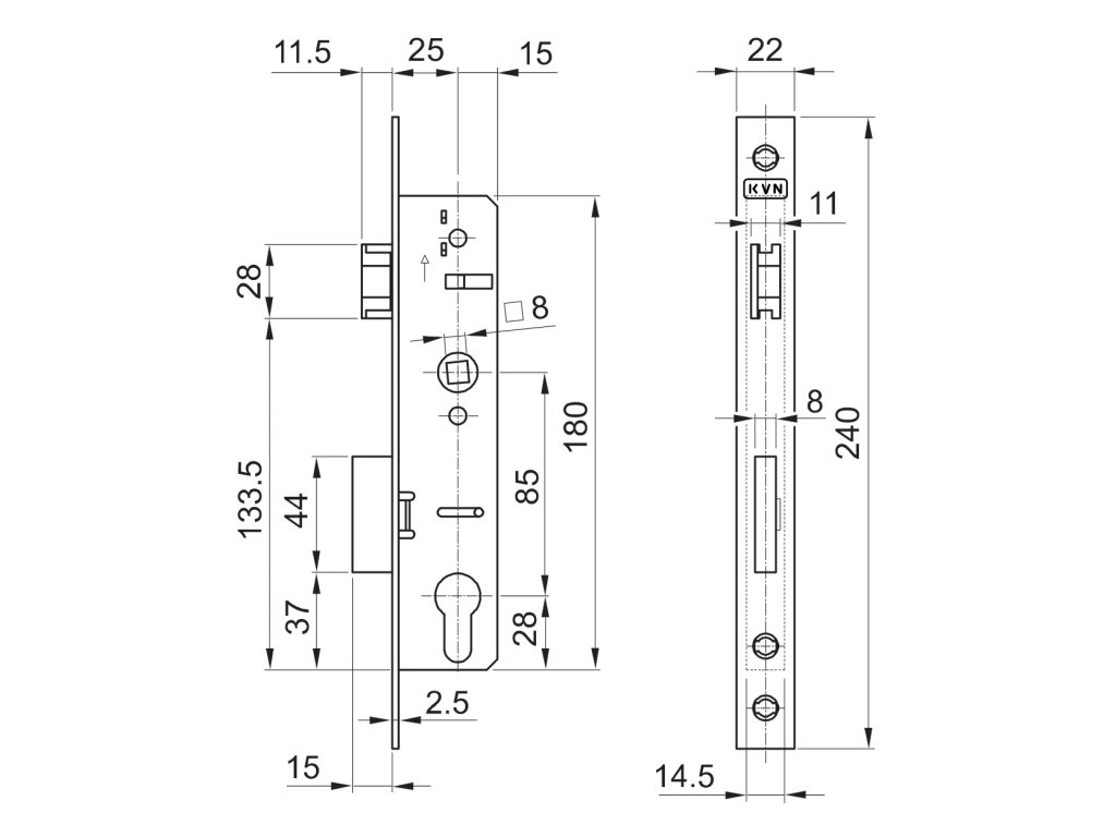 Zámok vložkový, zápust 40mm, rozteč 85mm