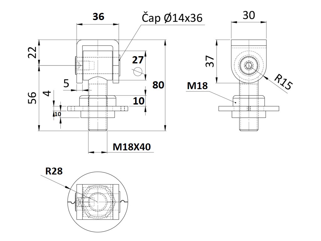 záves nastaviteľný, závit M18, rozoberateľná podložka, čiastočne pozinkovaný