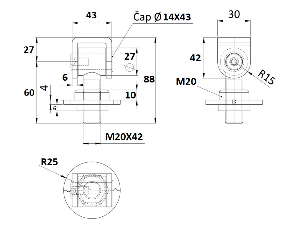 záves nastaviteľný, závit M20, rozoberateľná podložka, čiastočne pozinkovaný