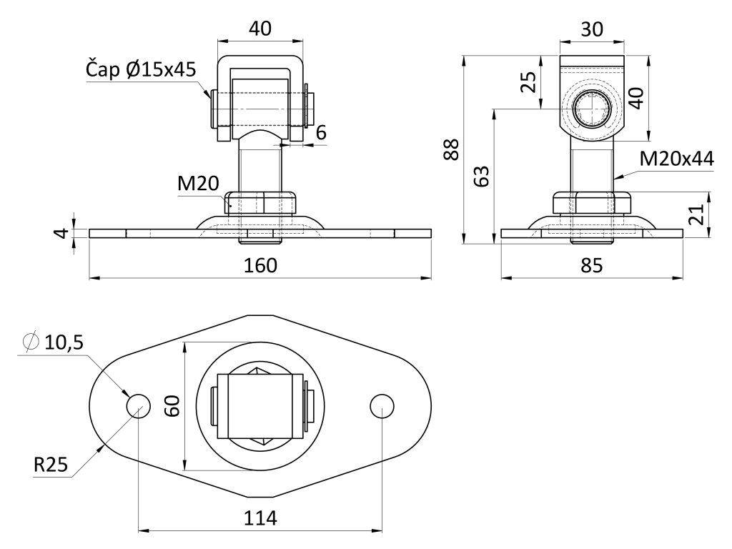 Záves s platňou, oválny M20Dodatočné parametre