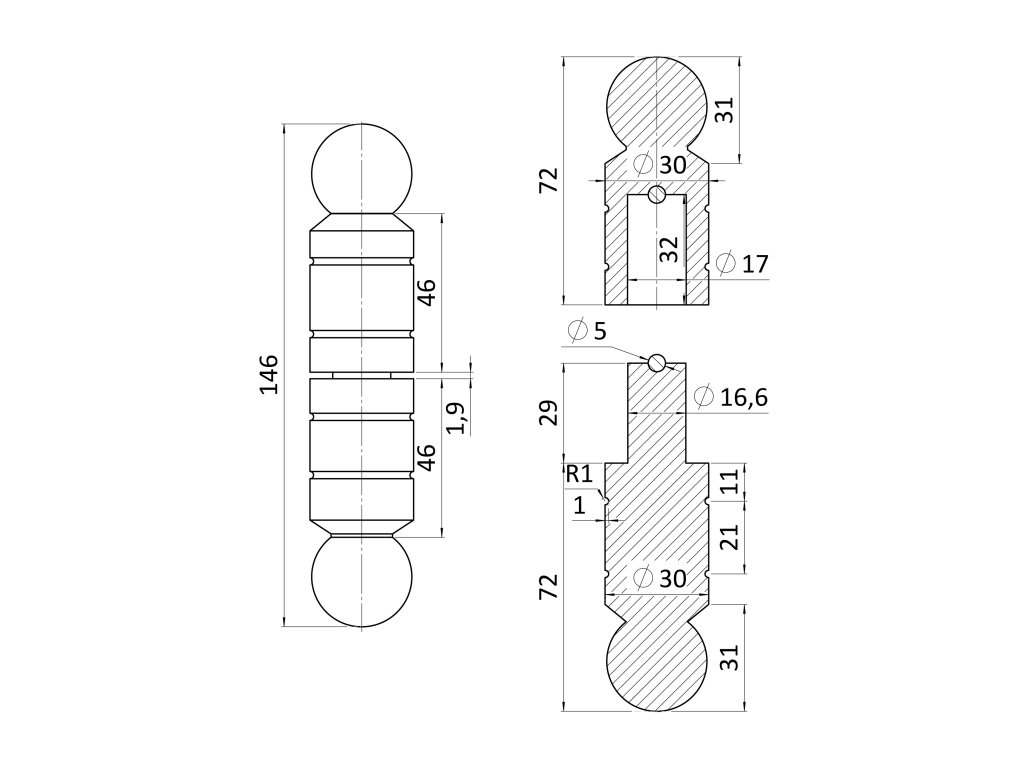 Záves ozdobný ø 30 x 146 mm s guličkou