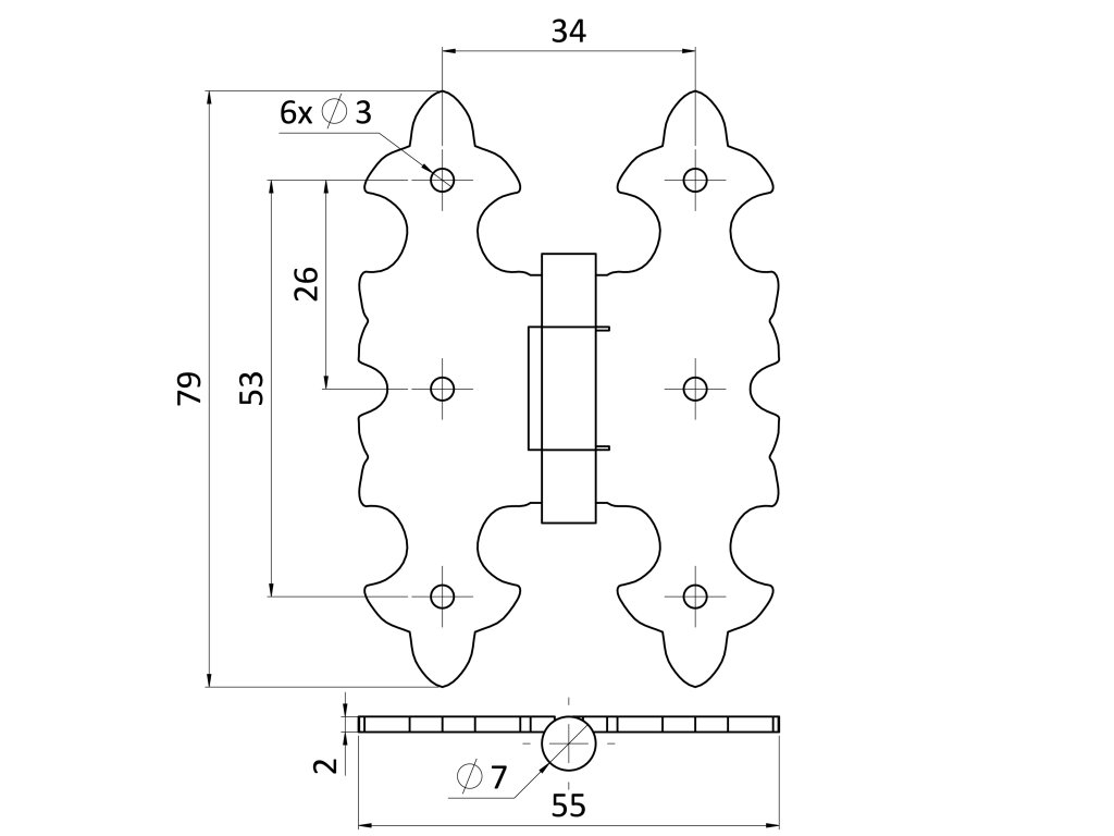 Záves ozdobný, čierny, 79 x 55 mm