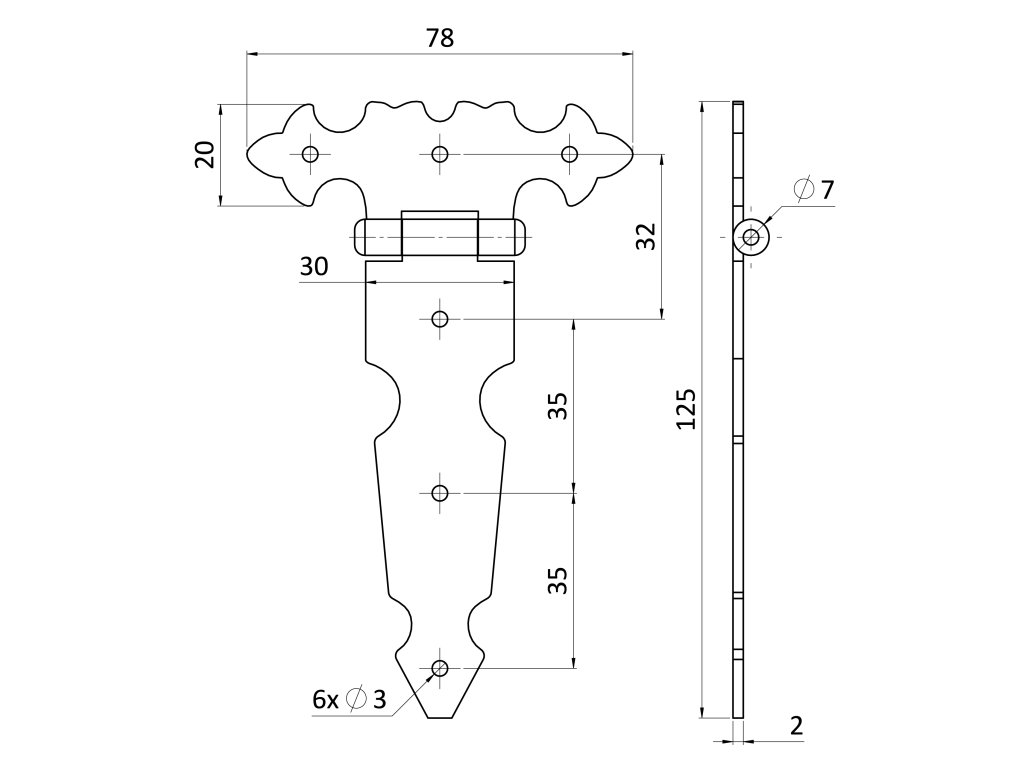 Záves pásový ozdobný 123 x 80 mm, čierny