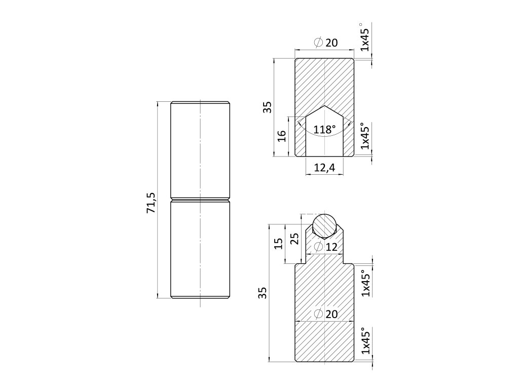 Záves s guličkou ø 20 x 70 mm, bez povrchovej úpravy