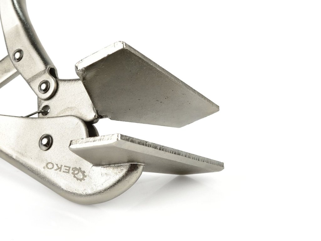 Ploché zváracie kliešte sú ideálne pre použitie v profesionálnych zváracích dielňach. Dolná nastaviteľná samosvorná čeľusť umožňuje pevné uchopenie vybraného prvku, čím zabraňuje jeho šmyku a pohybu.Charakteristika produktu: